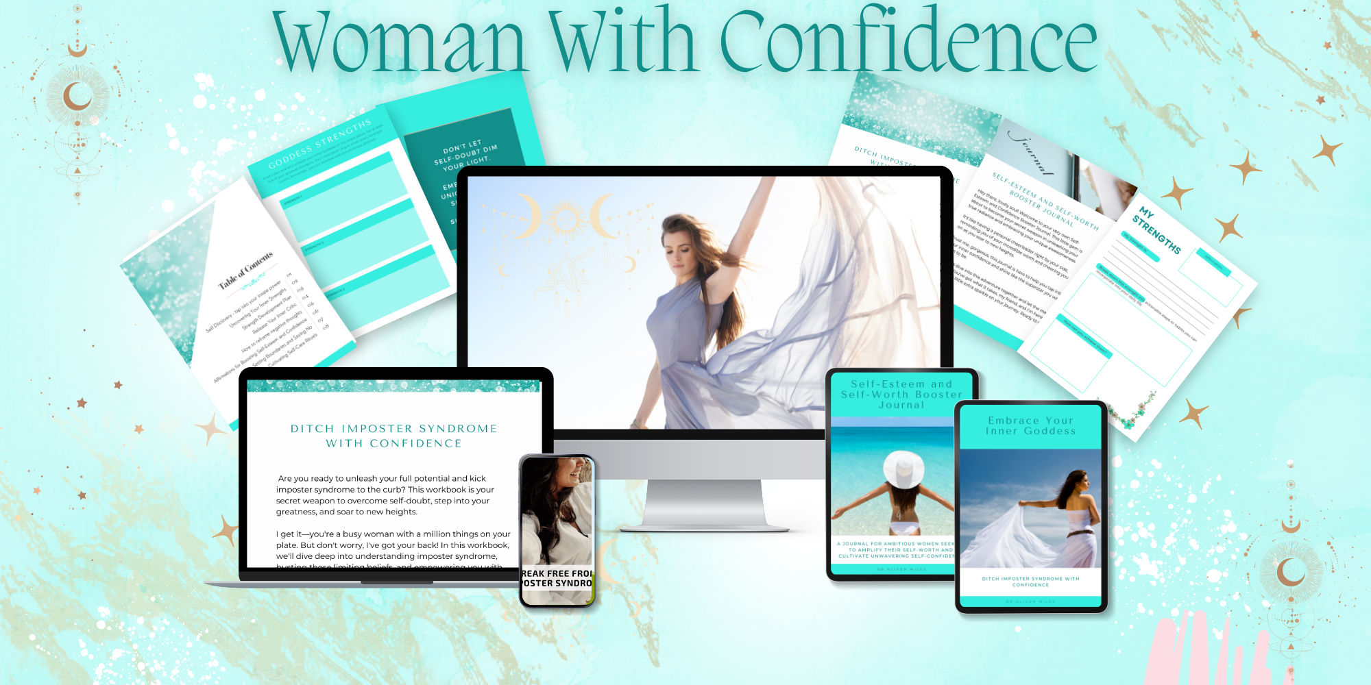 Woman With Confidence is a bundle of expertly designed journals and customised hypnosis audios that help you melt away the heaviness of self-doubt and lack so you can easily shift your energy and put yourself in the best position to manifest the wealth, success and life you've always desired .